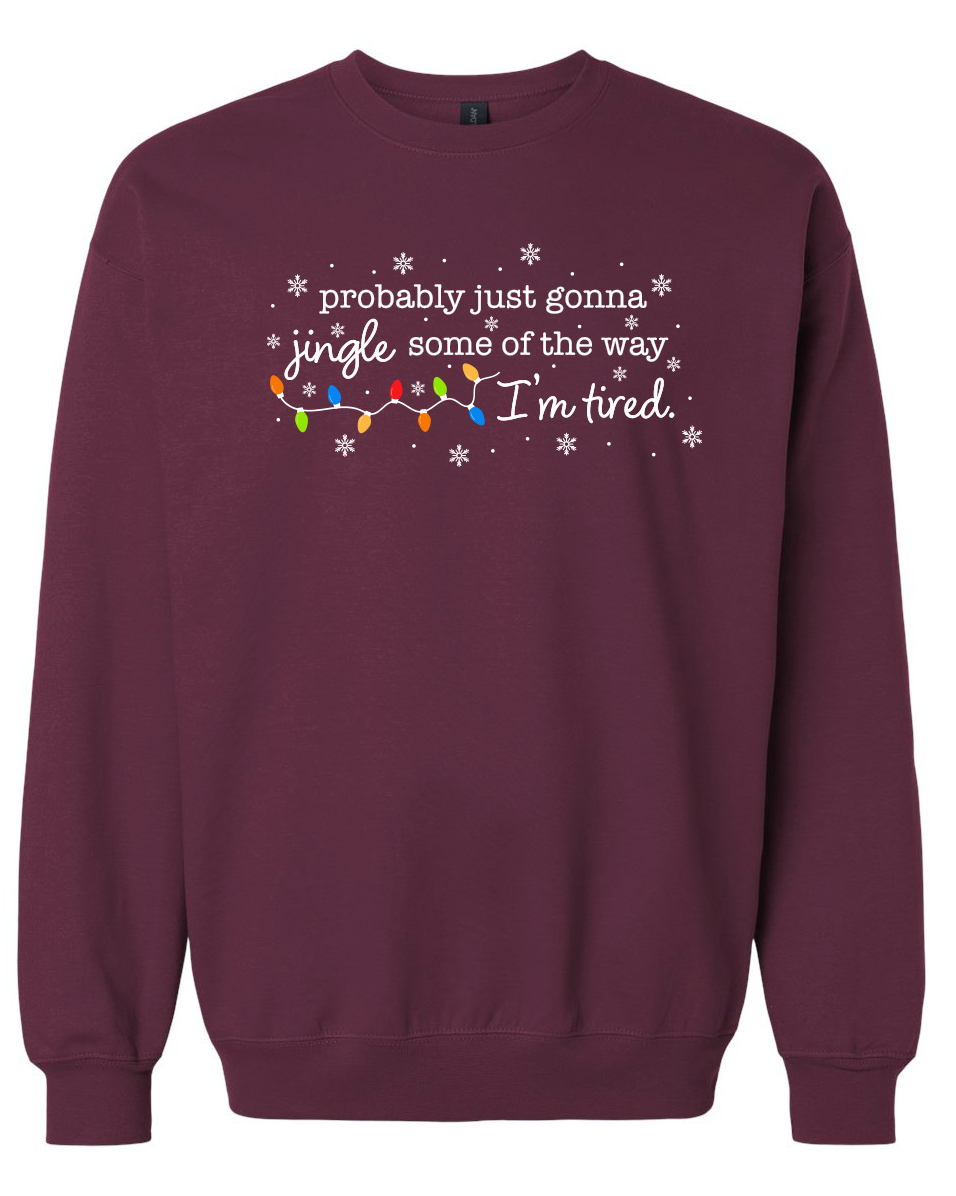 For the festive soul who's doing their best to show their Christmas cheer, this cozy sweatshirt features brightly-colored Christmas lights with a funny, relatable phrase: "Probably just gonna jingle some of the way- I'm tired." The perfect mix of comfy and cute!